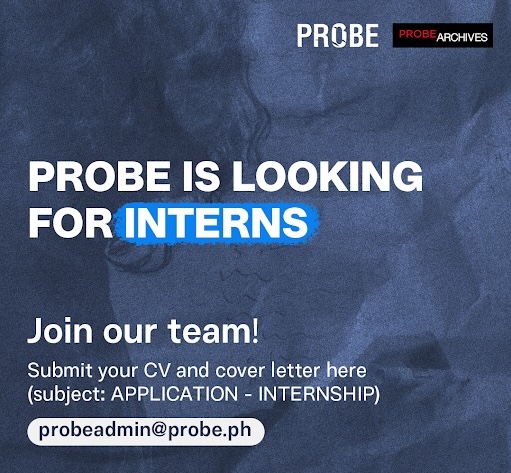 If you are interested in an internship experience in media production and archiving, contact Probe Productions/Probe Archives through probeadmin@probe.ph